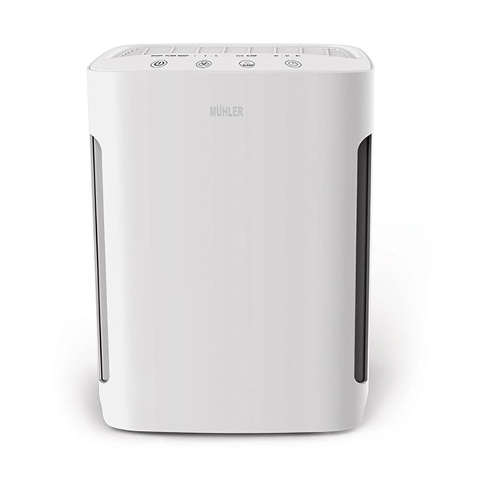 Breathe cleaner, healthier air with the Muhler Air Purifier APM-200UV, designed to effectively improve indoor air quality in your home or office. Compact yet powerful, it captures airborne particles such as dust, allergens, pollen, smoke, and pet dander, while also helping neutralize bacteria, viruses, and microbes. Equipped with a 4-stage filtration system, this purifier ensures thorough air cleaning at every level. The washable pre-filter traps larger particles, while the HEPA filter captures fine dust and allergens. An activated carbon filter removes unpleasant odors and harmful gases, and the built-in UVC lamp helps combat mold, bacteria, and viruses for added protection. Its dual side air ducts maximize airflow for more efficient purification, delivering a CADR of 95 m³/hour—ideal for rooms up to 20 m². With three fan speeds and low noise levels (as quiet as 32 dB), it provides flexible performance for any time of day. The sleep mode ensures ultra-quiet operation with lights off, making it perfect for nighttime use. Additional features like a filter replacement indicator and a programmable timer (2, 4, or 8 hours) make it easy to maintain and operate. Key Features: 4-stage filtration system: Washable pre-filter (large particles) HEPA filter (dust, pollen, allergens, smoke) Activated carbon filter (odors and gases) UVC lamp (bacteria, viruses, mold) Dual side air ducts for increased airflow CADR: 95 m³/hour Suitable for rooms up to 20 m² 3 fan speeds Low noise levels: 32 / 45 / 55 dB Sleep mode (quiet operation, lights off) Timer: 2 / 4 / 8 hours Filter replacement indicator Hidden handle for easy carrying Compact size: 38 × 27 × 22.6 cm Power: 60W Voltage: 220–240V / 50–60Hz Efficient, quiet, and easy to use, the Muhler APM-200UV Air Purifier is a reliable solution for maintaining fresh and clean air in smaller living spaces.