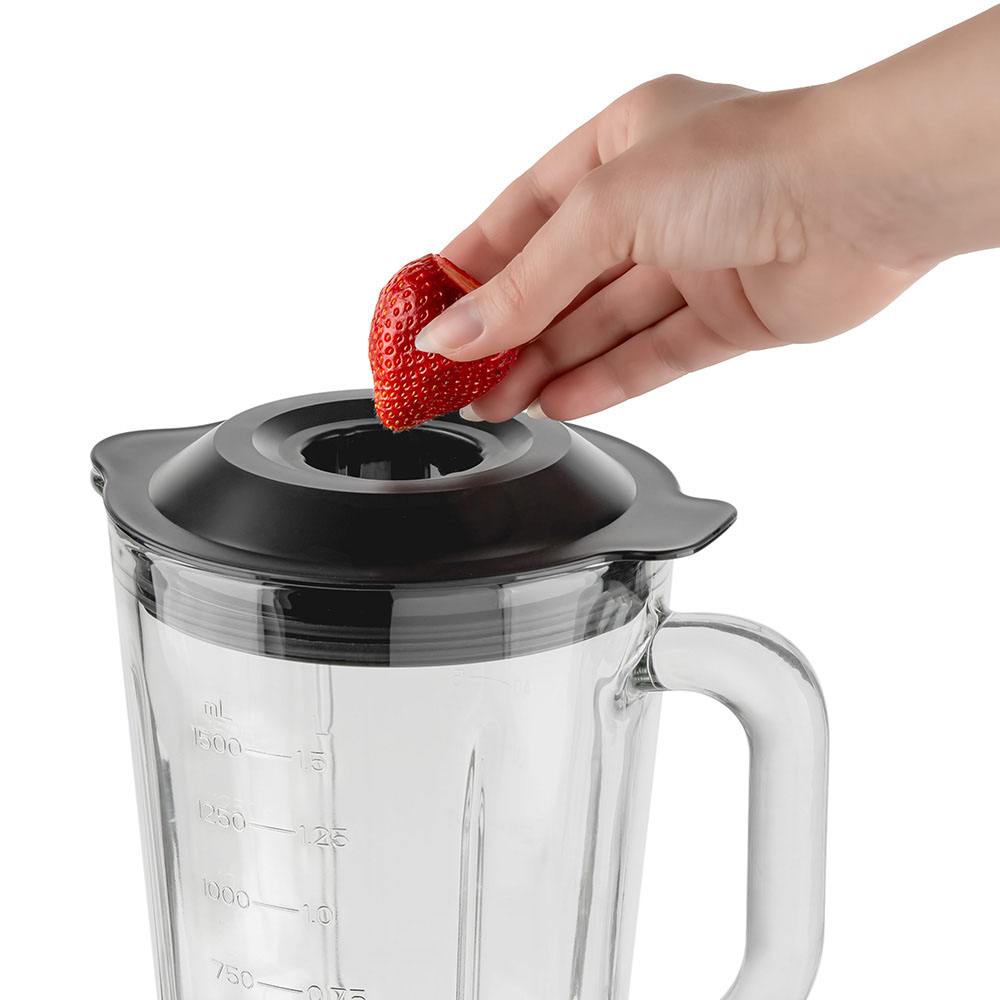 Powerful Blender Glass jug with a capacity of 1.5L 2 speed settings, Pulse function Safety system ensures operation only when the jug is correctly assembled 4 stainless steel blending blades Non-slip rubberized feet 500W, 220-240V/ 50-60Hz