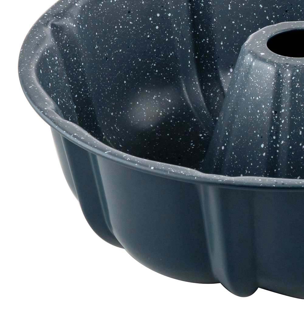 Carbon steel with marble non- stick coating. Use up to 240 degrees. Use nylon, wooden or silicone tools not to scratch the coating surface. Do not use in oven temperatures in excess of 240?C. Not suitable for use over direct heat or under grills. Always use an oven glove when removing from the oven. Never use abrasives. Dishwasher safe