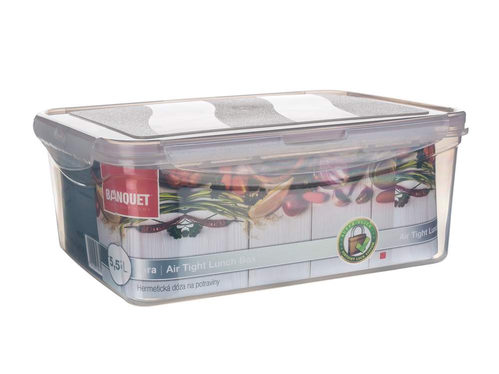Air tight lunch box LARA 5,5l, pink The LARA 5.5l plastic dose for a food with a pink silicone gasket ensuring airtightness of the dose. This keeps the food fresh for a long time. Use in a freezer up to -25??C and in a microwave oven up to +95??C.