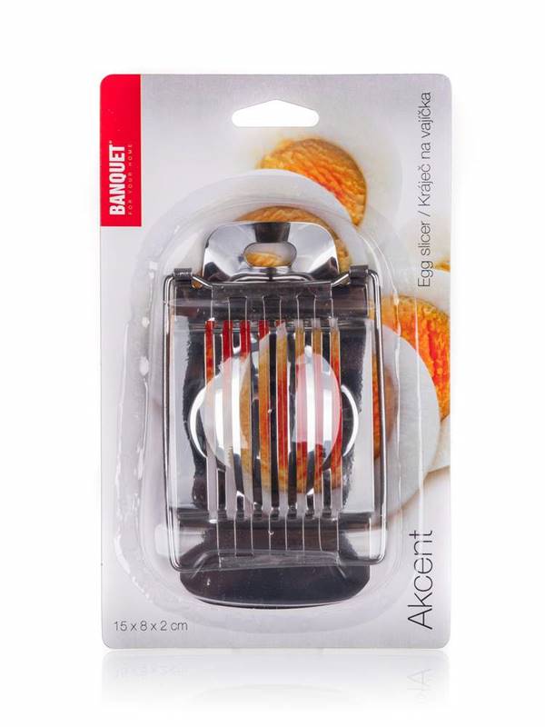 Egg slicer 15x8x2 cm AKCENT The AKCENT egg slicer is a useful tool for easy slicing of hard-boiled eggs. Dimensions: 15 x 8 x 2 cm, material: stainless steel.