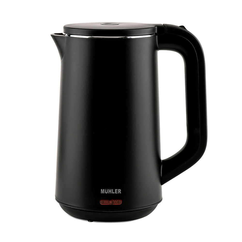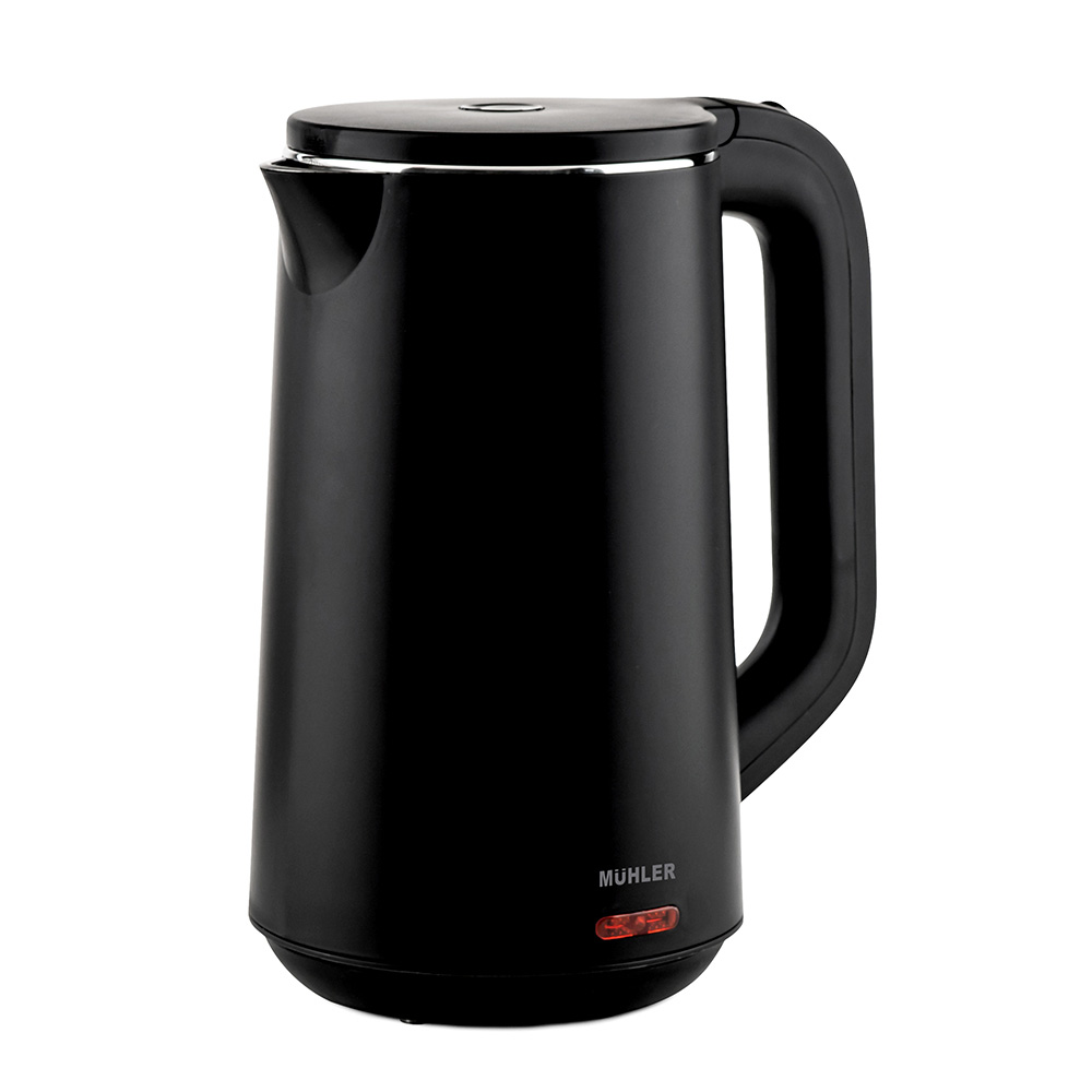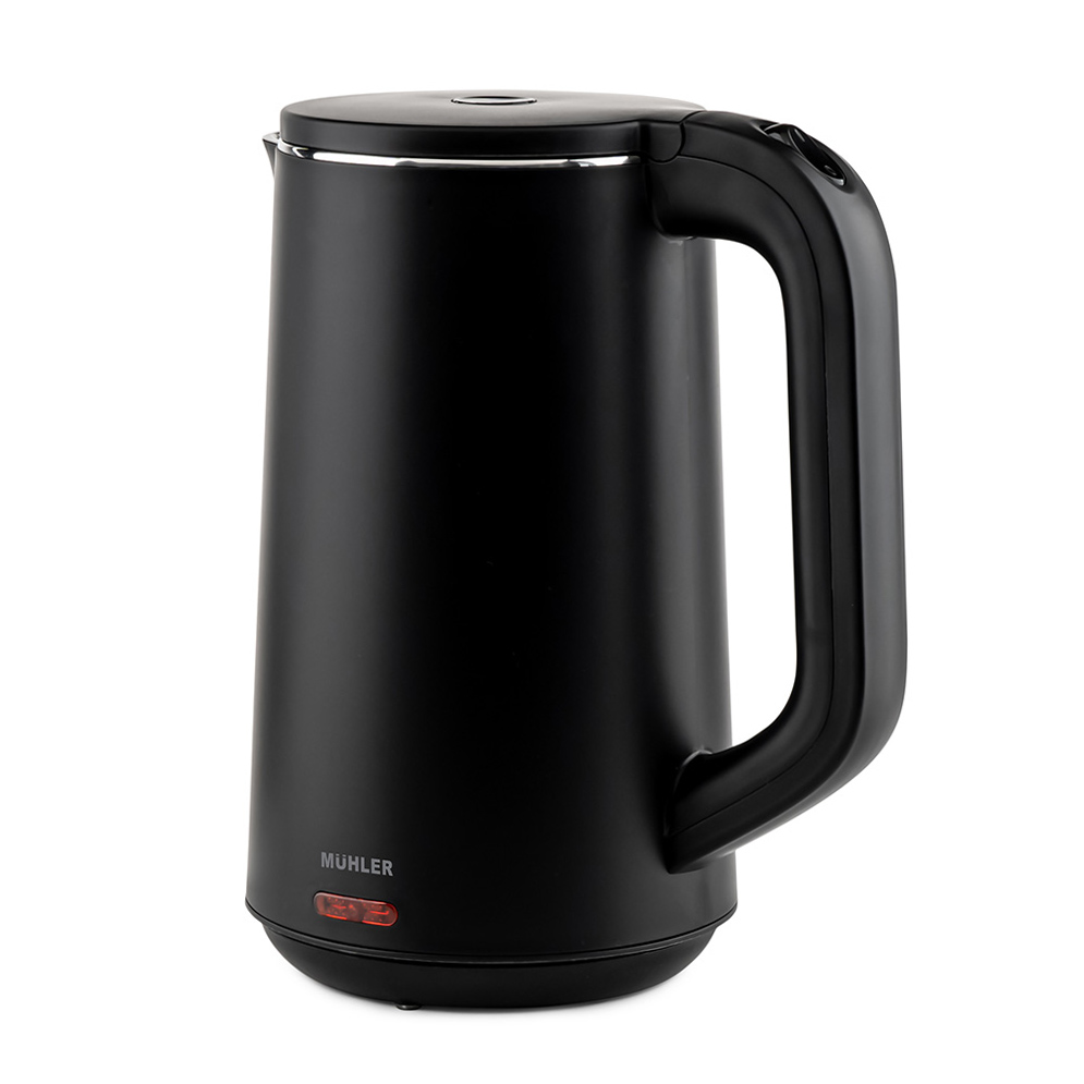 MUHLER Electric Kettle 1.5L – Black Enjoy fast, efficient boiling with the stylish MUHLER Electric Kettle. With a 1.5-liter capacity, it’s perfect for preparing tea, coffee, or instant meals. Designed with a sleek white finish, it features a cordless 360° swivel base, automatic shut-off, boil-dry protection, and a clear water level indicator for added convenience and safety. A must-have for any modern kitchen. The MUHLER 1.5-liter electric kettle combines functionality and safety in a modern design. Key features include: Capacity: 1.5 liters Power Output: 1500-1800W Safety: Automatic shut-off & boil-dry protection Design: Cordless 360° swivel base, ergonomic handle Indicator: Transparent water level window Material: Durable plastic housing in a clean white finish Voltage: 220-240V, 50/60Hz