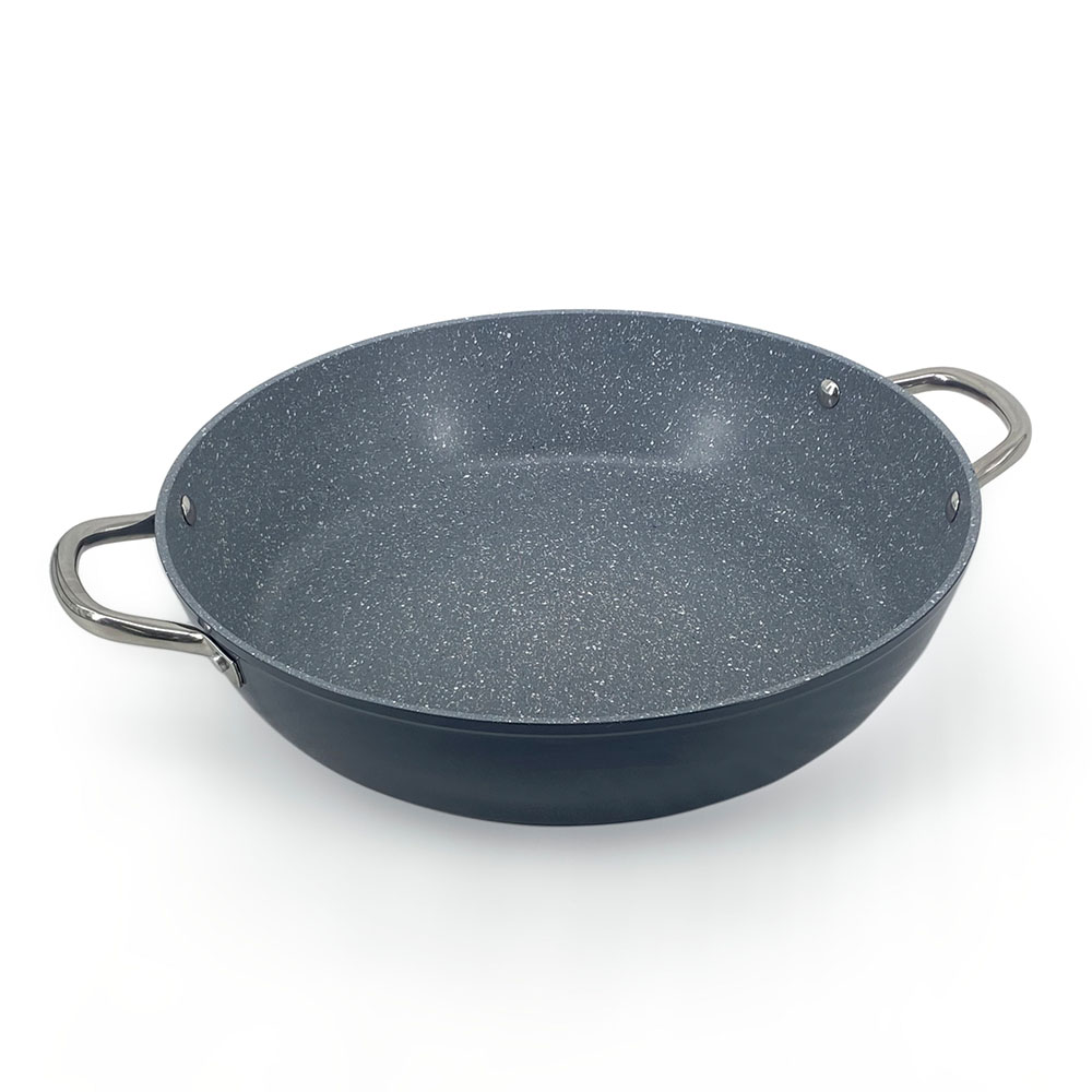 High quality forged aluminum for maximum and even heat conductivity Durable marble non-stick coating Suitable for: electric, gas, ceramic, halogen and induction hot plates Dishwasher safe Oven safe Suitable for healthy cooking without fat Easy cleaning