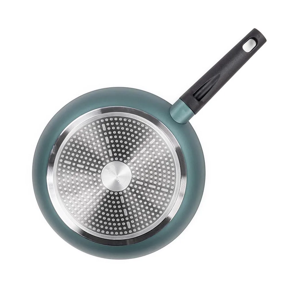 Fry Pan 28 cm – Smart Luigi Ferrero The Smart Luigi Ferrero 28 cm Fry Pan is crafted from high-quality forged aluminium with a durable 2.8 mm thickness, ensuring excellent heat distribution and long-lasting performance. Its premium marble non-stick coating allows effortless food release and easy cleaning, making everyday cooking more enjoyable. Designed for healthy cooking, this fry pan lets you prepare meals with little to no added fat. It is suitable for all types of heating burners, including induction, and is dishwasher safe for maximum convenience. Key Features: High-quality forged aluminium construction 2.8 mm thick body for even heat distribution Durable marble non-stick coating Suitable for all cooktops, including induction Dishwasher safe and easy to clean Ideal for healthy, low-fat cooking Perfect for daily use, the Smart Luigi Ferrero fry pan combines functionality, durability, and modern design in one essential kitchen tool.