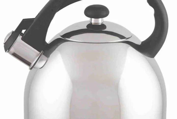 Traditional kettle This steel kettle with a whistle, thanks to its universal color, complements a variety of kitchen styles—from modern to traditional. Made of solid steel, it not only looks aesthetically pleasing but also guarantees durability and long-lasting use. Its large capacity allows you to prepare hot beverages, such as tea or coffee, for the entire family. The ergonomic handle ensures comfort and safety when carrying the kettle, even when full of hot water . Bakelite handle Equipped with a whistle For gas, induction and other types of cookers