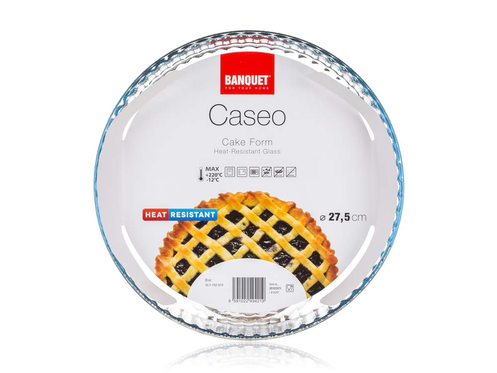 Glass cake mould CASEO 27,5cm The CASEO cake mould, diameter 27.5 cm, is made of quality and durable borosilicate glass. Its advantages include long service life, hygienic safety and easy maintenance (can be washed in a dishwasher).