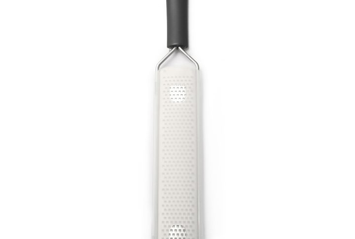 Grater made of high-quality 18/0 stainless steel Comfortable, ergonomic handle The grater has 4 sides for grating – can be used for vegetables, fruits, chocolate, cheeses and more Size: 10.4x8x22.5cm Easy to clean Dishwasher safe.
