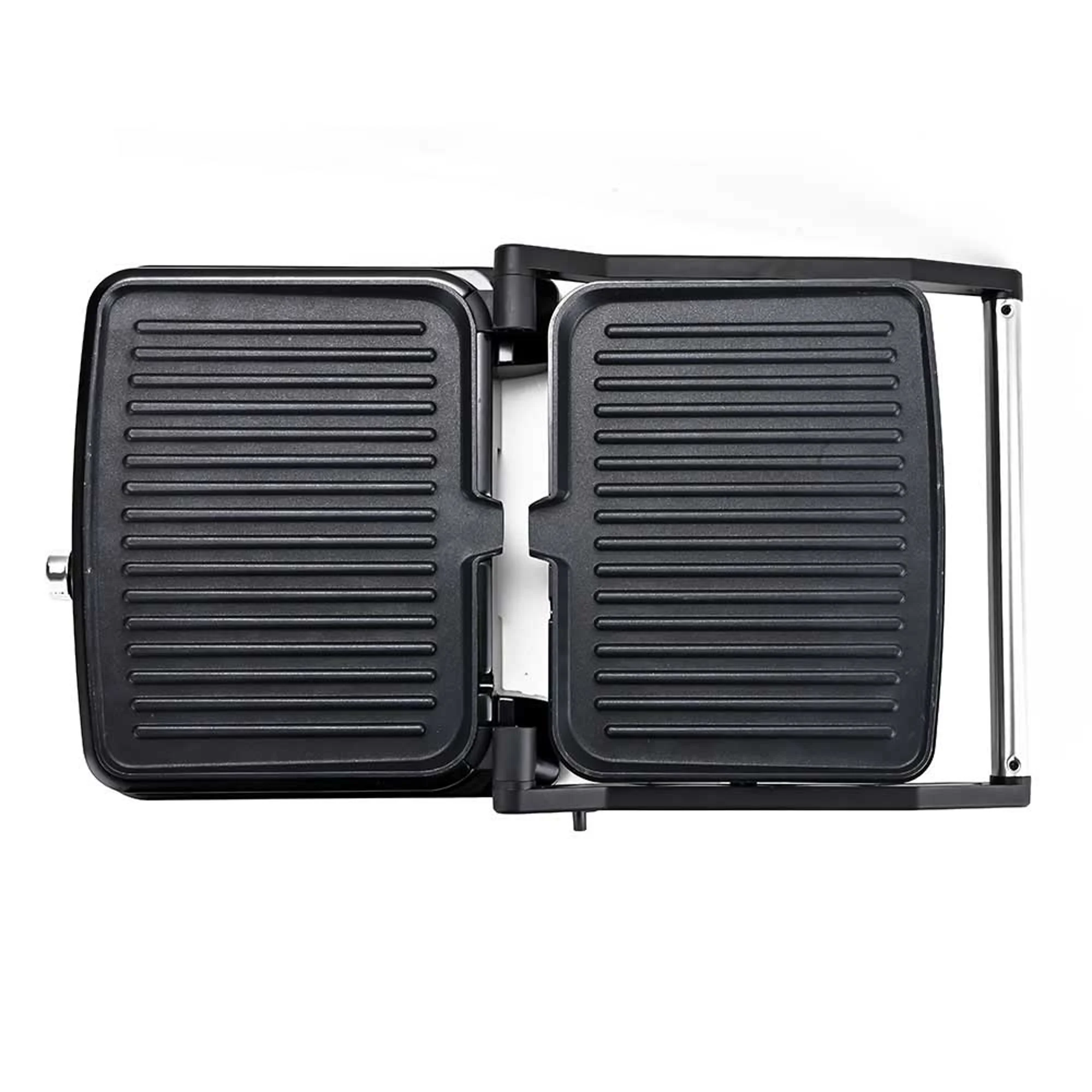 Enjoy fast, versatile cooking with the Muhler 2-in-1 Contact Grill & Grill – the perfect solution for delicious grilled meals at home. Designed for convenience and performance, this powerful 2000W grill lets you prepare everything from toasted sandwiches and paninis to meats, vegetables, and burgers with ease. Use it as a contact grill for perfectly pressed sandwiches and evenly cooked meats, or open it flat to 180° to transform it into a full-size grill – ideal for cooking multiple items at once. The spacious non-stick grill plates (28.0 x 23.5 cm) can accommodate up to 4 slices, making it perfect for family meals. With adjustable temperature control, dual indicator lights, and a thermostatically controlled locking system, you’ll enjoy precise cooking and reliable performance every time. Key Features: 2-in-1 design – Contact grill & 180° open grill Large non-stick plates (28.0 x 23.5 cm) – fits up to 4 slices 2000W power for fast heating and efficient cooking Adjustable temperature control for versatile cooking options Stainless steel decorative panel for a modern look Cool-touch stainless steel handle for safe operation Thermostatic control with locking system 2 indicator lights – power & heating Removable oil drip tray for cleaner cooking Anti-slip feet for added stability 220–240V / 50–60Hz