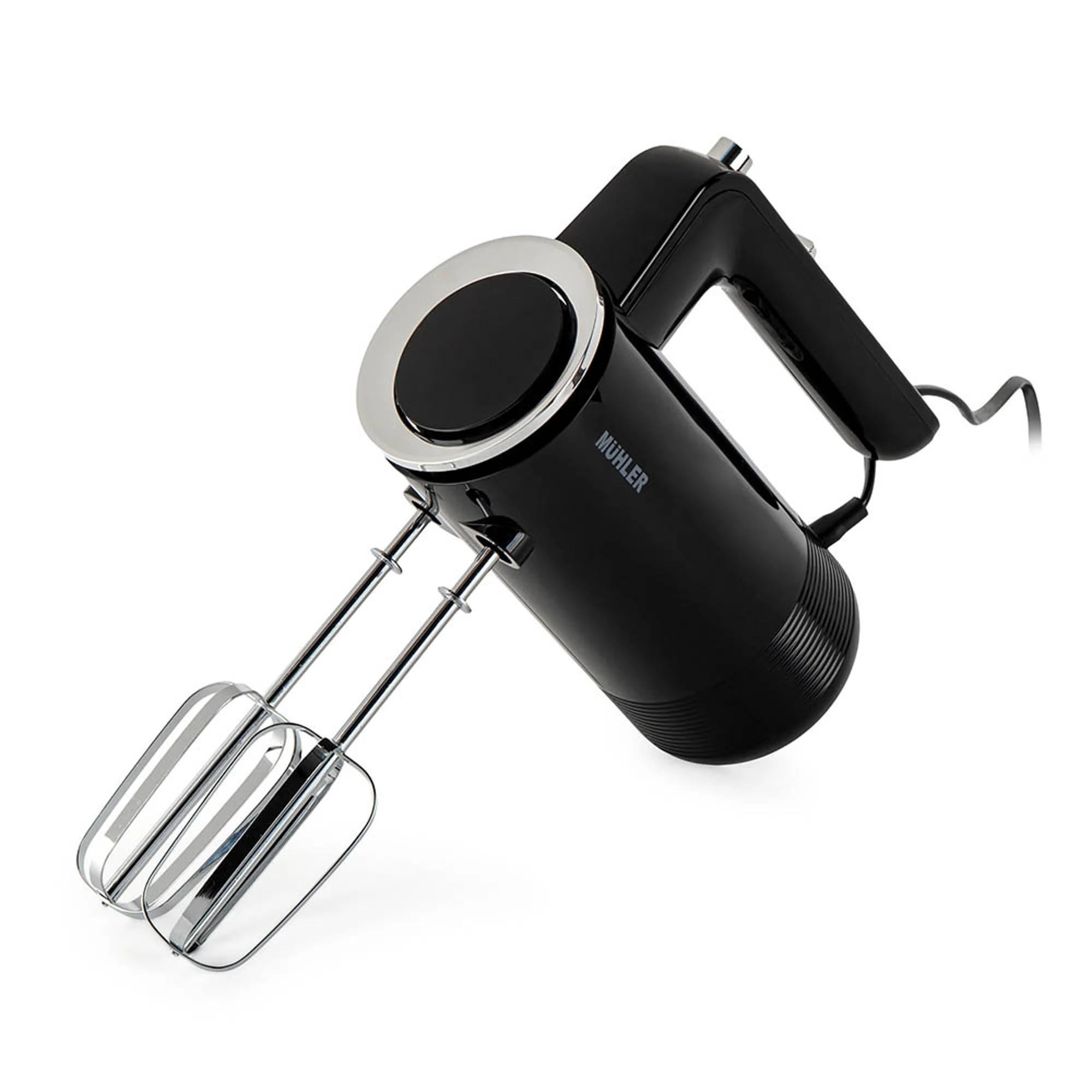 The Muhler 300W Hand Mixer-Stand Holder is a compact and reliable kitchen helper, designed for effortless mixing, whipping, and kneading. With multiple speed options and convenient accessories, it ensures smooth performance for all your everyday baking and cooking needs. Key Features: 300W Motor – Provides consistent power for mixing and whipping. 5 Speed Levels – Easily adjust the mixing intensity for different recipes. TURBO Button – Extra boost for quick and powerful mixing when you need it. Practical Stand Holder – Offers convenient storage and a stable place to rest the mixer during use. Agitator Release Button – Simple and safe removal of attachments. Chromed Dough Hooks – Ideal for kneading dough efficiently. Chrome-Plated Beater Paddles – Perfect for whipping creams, eggs, and batters. Voltage: 220–240V~ | Frequency: 50–60Hz The Muhler Hand Mixer with Stand Holder is your go-to tool for quick, clean, and effective food preparation—perfect for any modern kitchen.