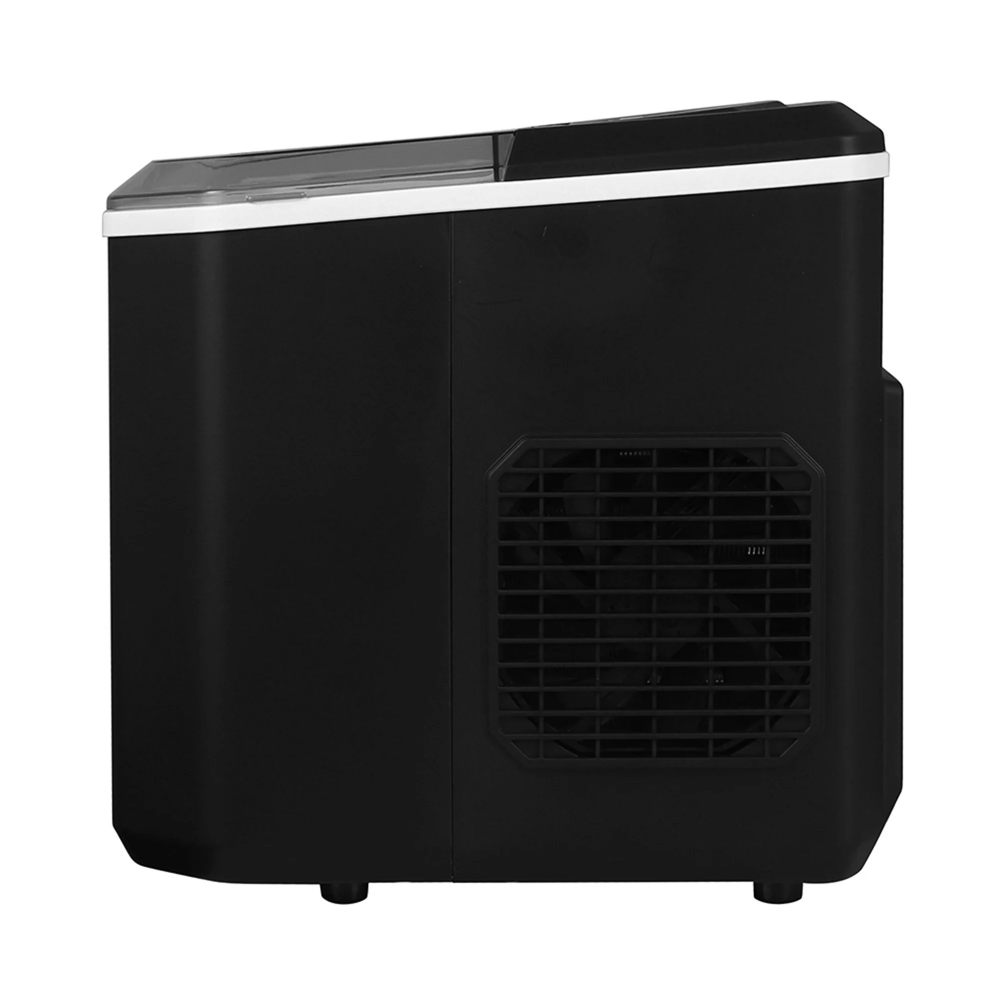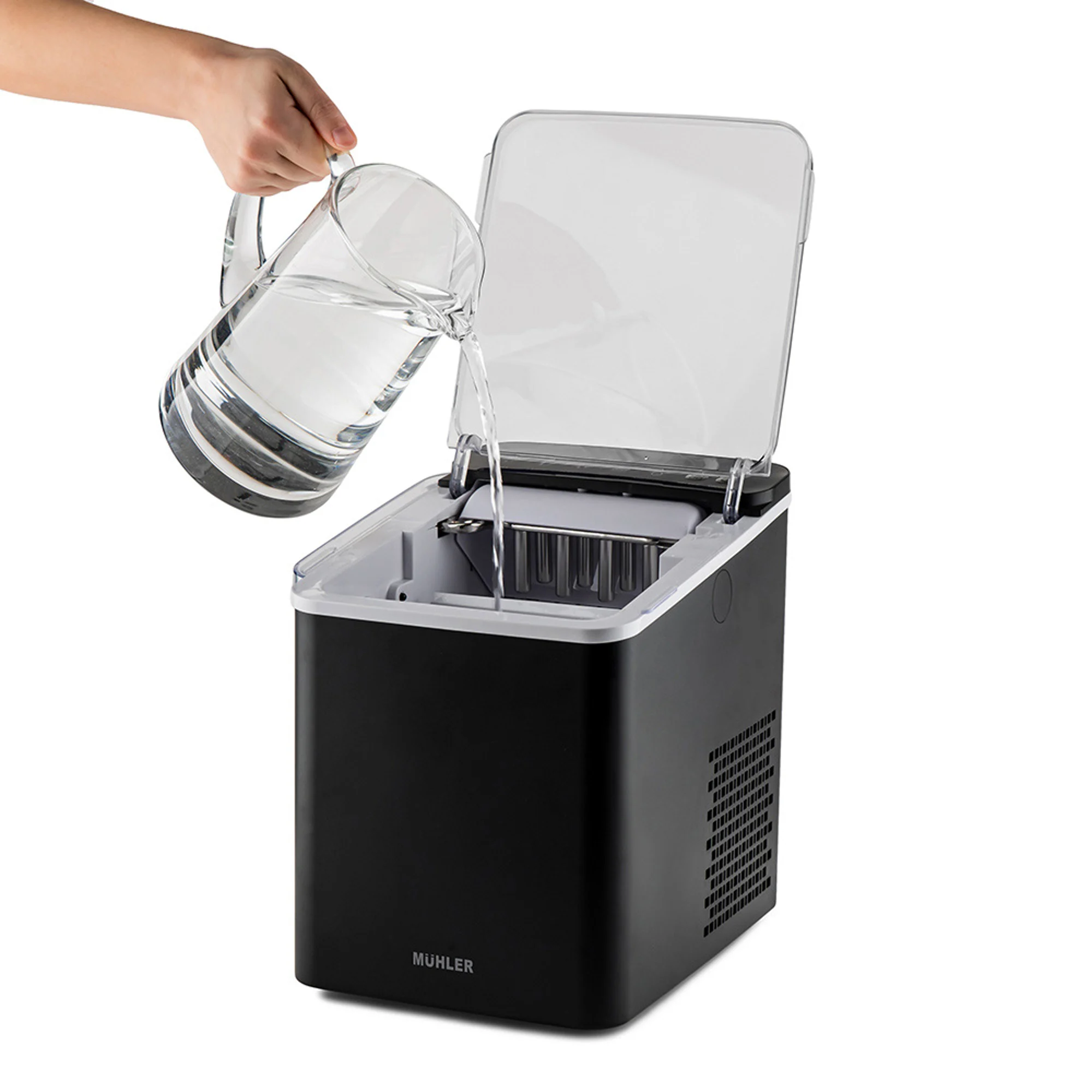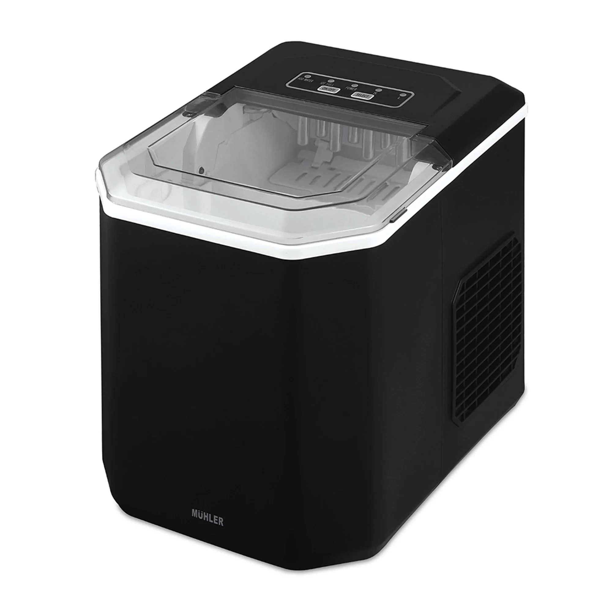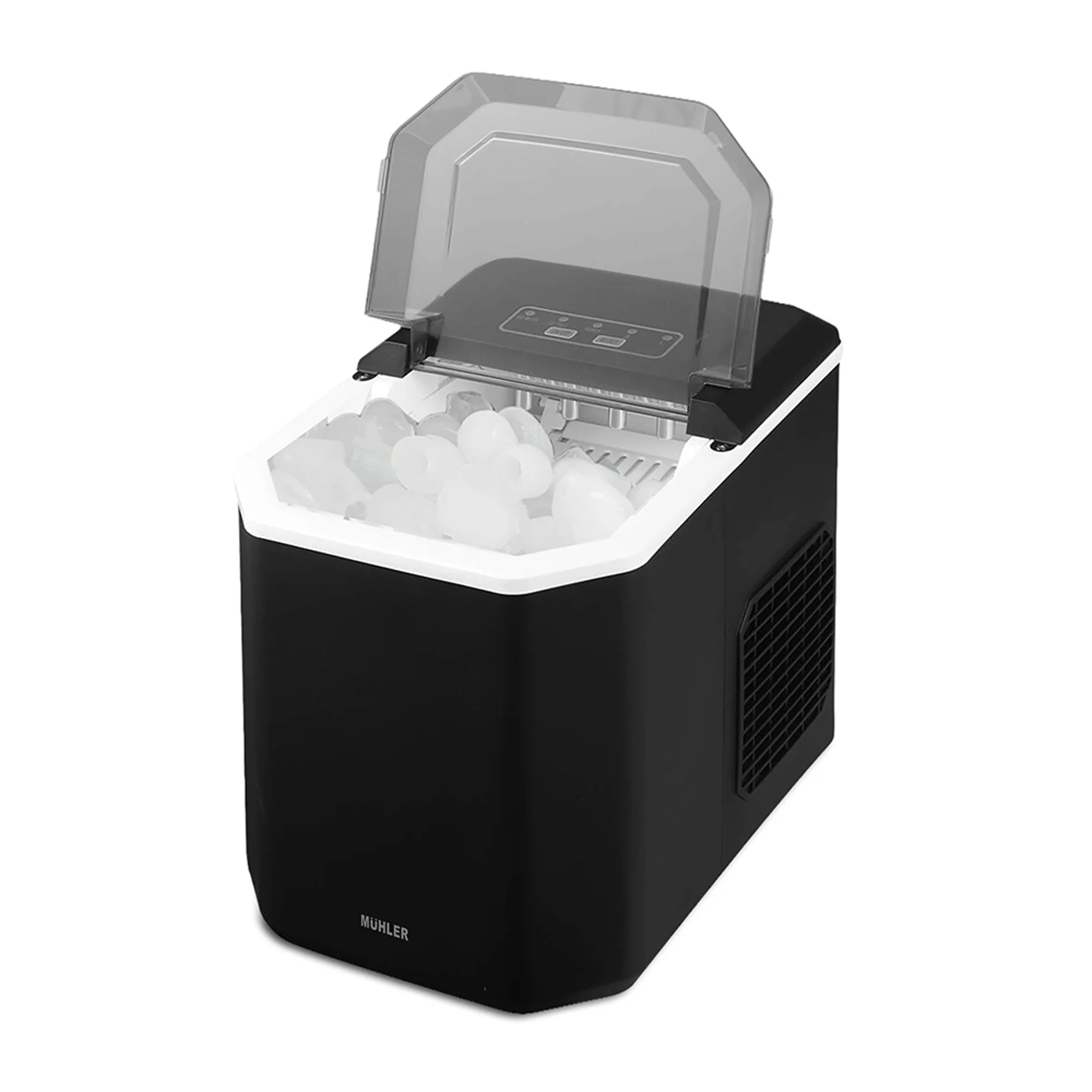 Enjoy fresh, perfectly shaped ice anytime with the Muhler Ice Maker, a compact and efficient solution for your home, office, or outdoor gatherings. Designed for convenience and speed, it produces up to 12–15 kg of bullet-shaped ice cubes within 24 hours, ensuring you’re never short of ice when you need it most. With a fast freezing cycle of just 6–12 minutes, this ice maker delivers 9 ice cubes per cycle and offers two cube sizes to suit your needs—from smaller cubes for quick chilling to larger ones for longer-lasting cooling. The 1.3L water tank keeps operation smooth, while the transparent lid allows you to monitor the ice-making process at a glance. The intuitive LED control panel makes operation simple, and built-in alerts notify you when the ice bin is full or when the water level is low. A self-cleaning function helps maintain hygiene with minimal effort, while the removable ice basket makes serving easy and convenient. Powered by efficient compressor cooling and using eco-friendly R600a refrigerant, this unit combines performance with energy-conscious design. Its compact size fits neatly on countertops without taking up too much space. Key Features: Ice production: up to 12–15 kg per 24 hours 9 bullet ice cubes per cycle 2 ice cube sizes: Small: ~Ø22 × 28 mm Large: ~Ø25 × 30 mm Fast cycle time: 6–12 minutes Water tank capacity: 1.3L Transparent lid for easy monitoring LED control panel Ice full & low water alerts Self-cleaning function Removable ice basket (approx. 65–95 cubes / 600 g) Compressor cooling system Refrigerant: R600a Power: 160W Dimensions (H/W/D): 222 × 294 × 290 mm Power cord length: 1.68 m Accessories included: Ice basket Ice scoop Compact, fast, and easy to use, the Muhler Ice Maker is perfect for keeping drinks chilled at home, parties, or any occasion.