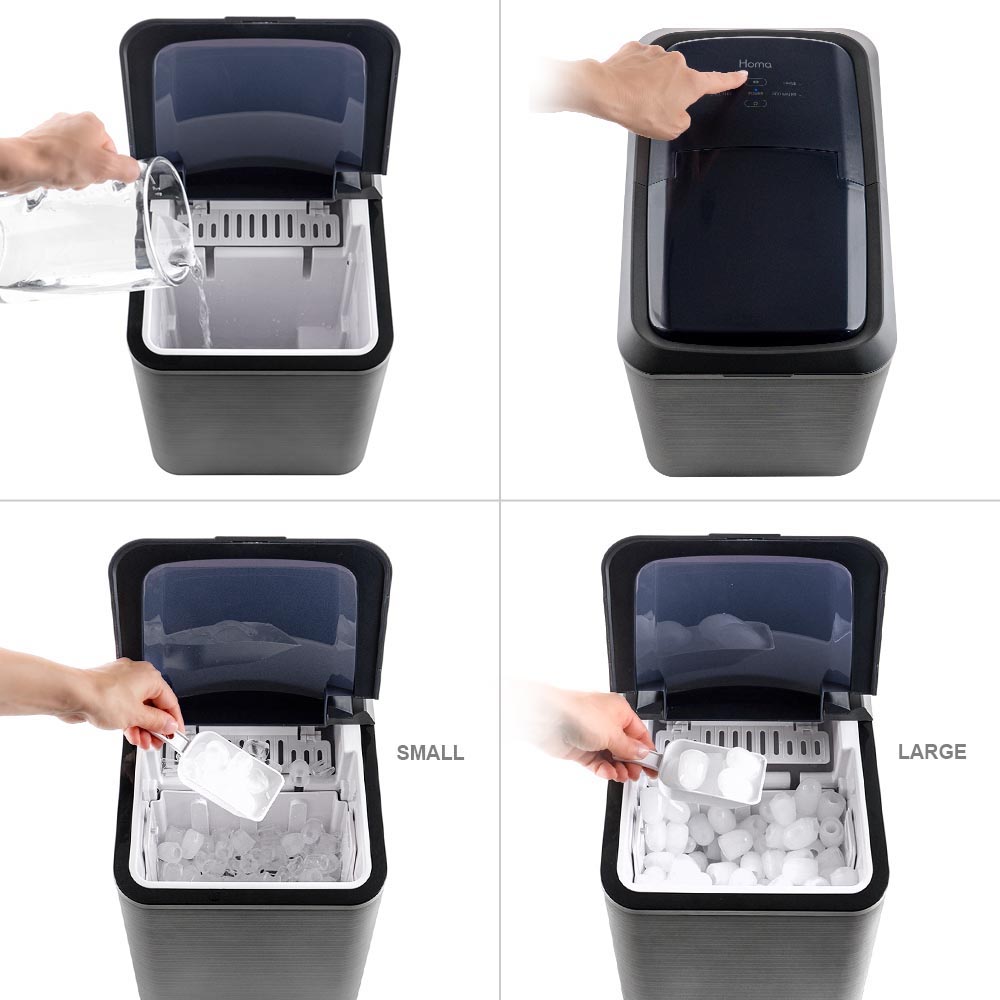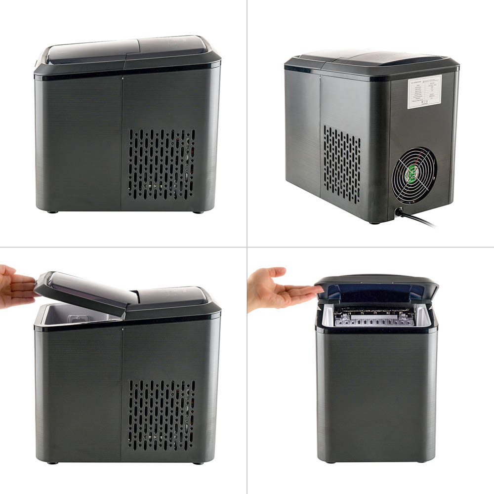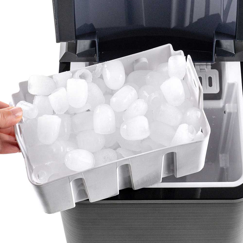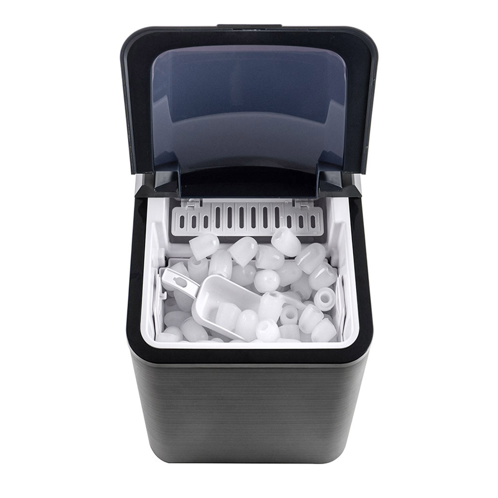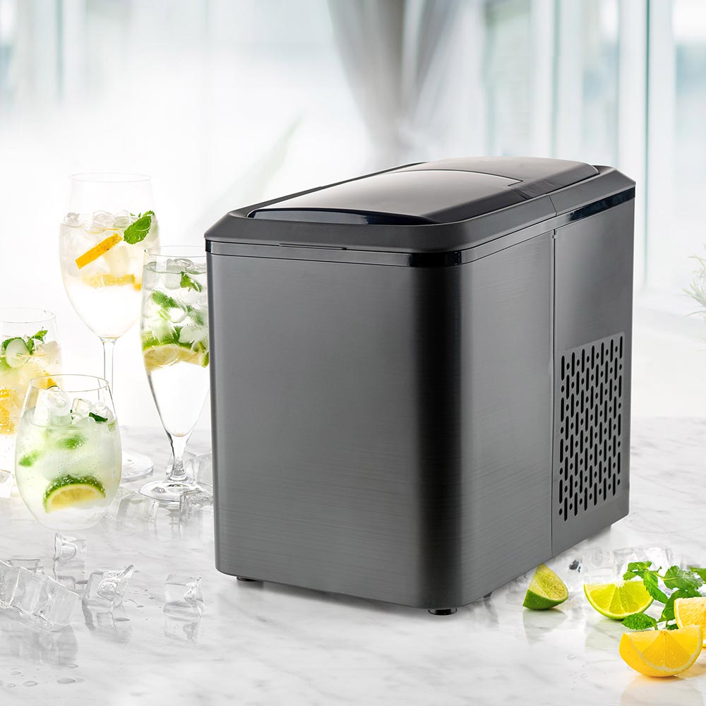 2 ice bullets sizes: Large ice size: 22~25×27~30mm Small ice size?20?23mm Water tank capacity – 2.2L Observation window LED control panel Ice full container warning Empty water tank warning 12kg Ice/24 hours Icing time: ~ 6 minutes/ cycle Icing rate: 9 pcs/ cycle Removable ice basket Unit dimensions (W/H/D): 240x320x360 mm 100W, 220-240V/ 50-60 Hz