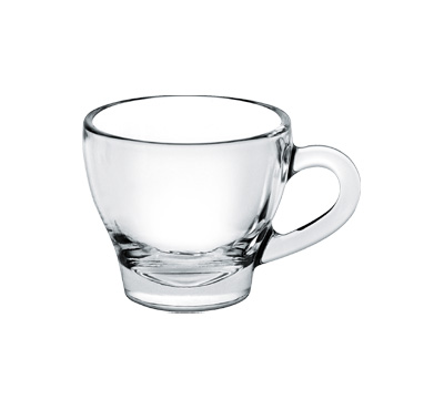 18 Cl_6 3/8 Oz capuccino cup 100 percent made in Italy in extra white quality glass. Classic shape of the old ceramic cups used in italian bars, this glass cup is ideal to use for capuccino and can be combined to Ishchia 15 saucer for a perfect service. The handle is generous which makes it confortable for the fingers and easy to lift. Dishawasher safe. Height 75.3mm Capacity 182cc Net weight 263gr Diameter 81.5mm