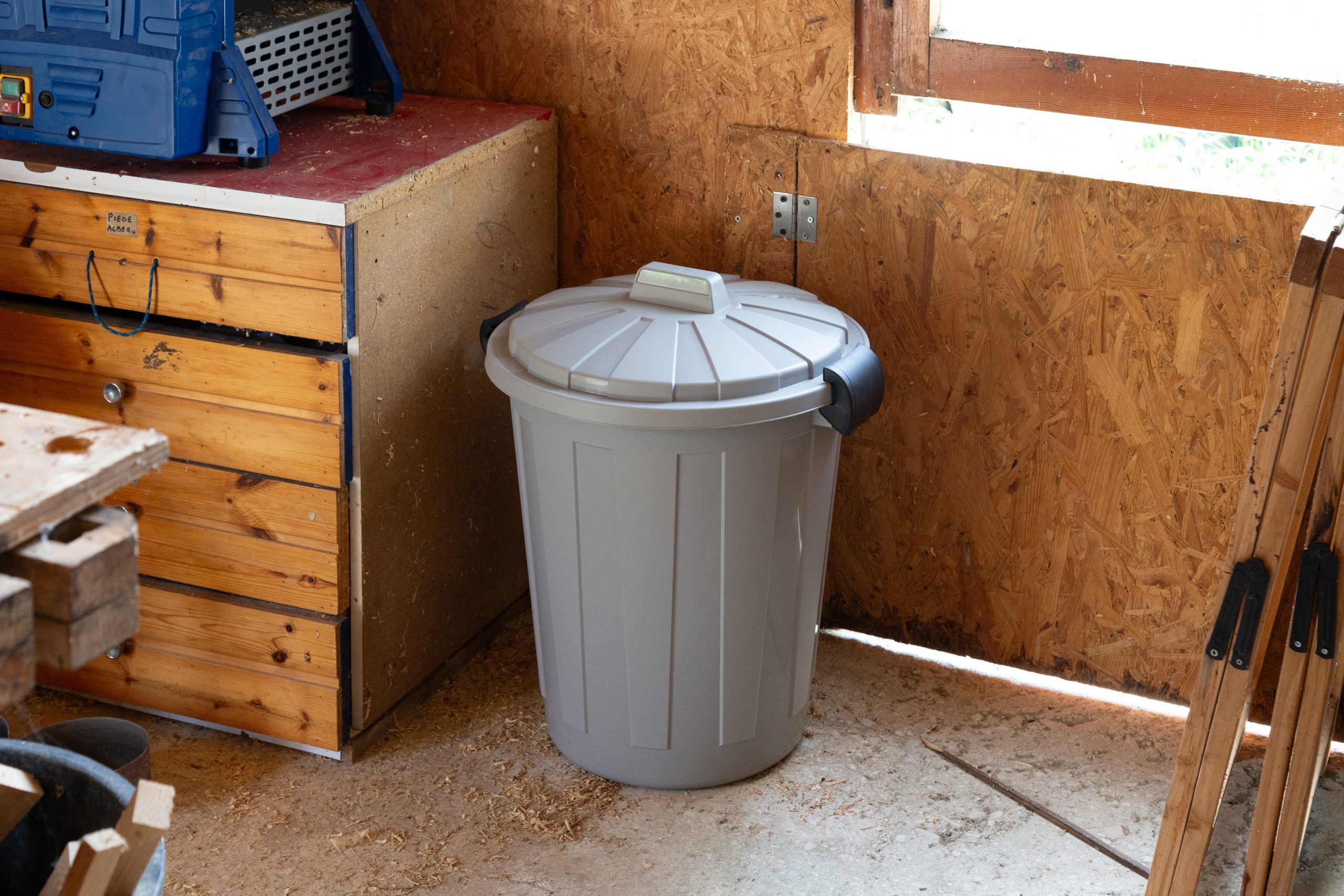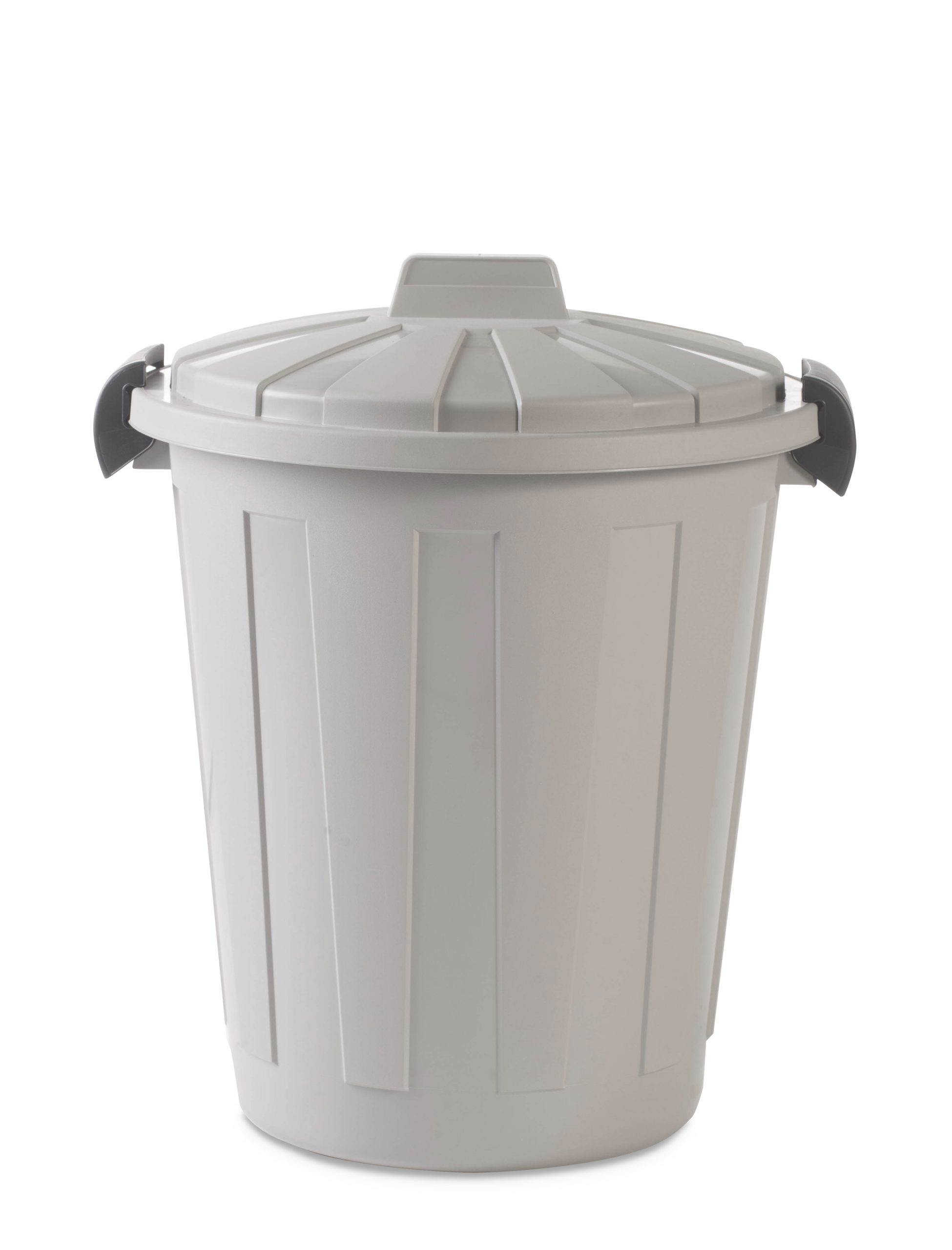 Wide bin with lid and two handles for a safe closure and easy carrying. Made of sturdy materials, it provides much space to store waste. Volume: 45L. Dimension: cm ?45×56,5h.