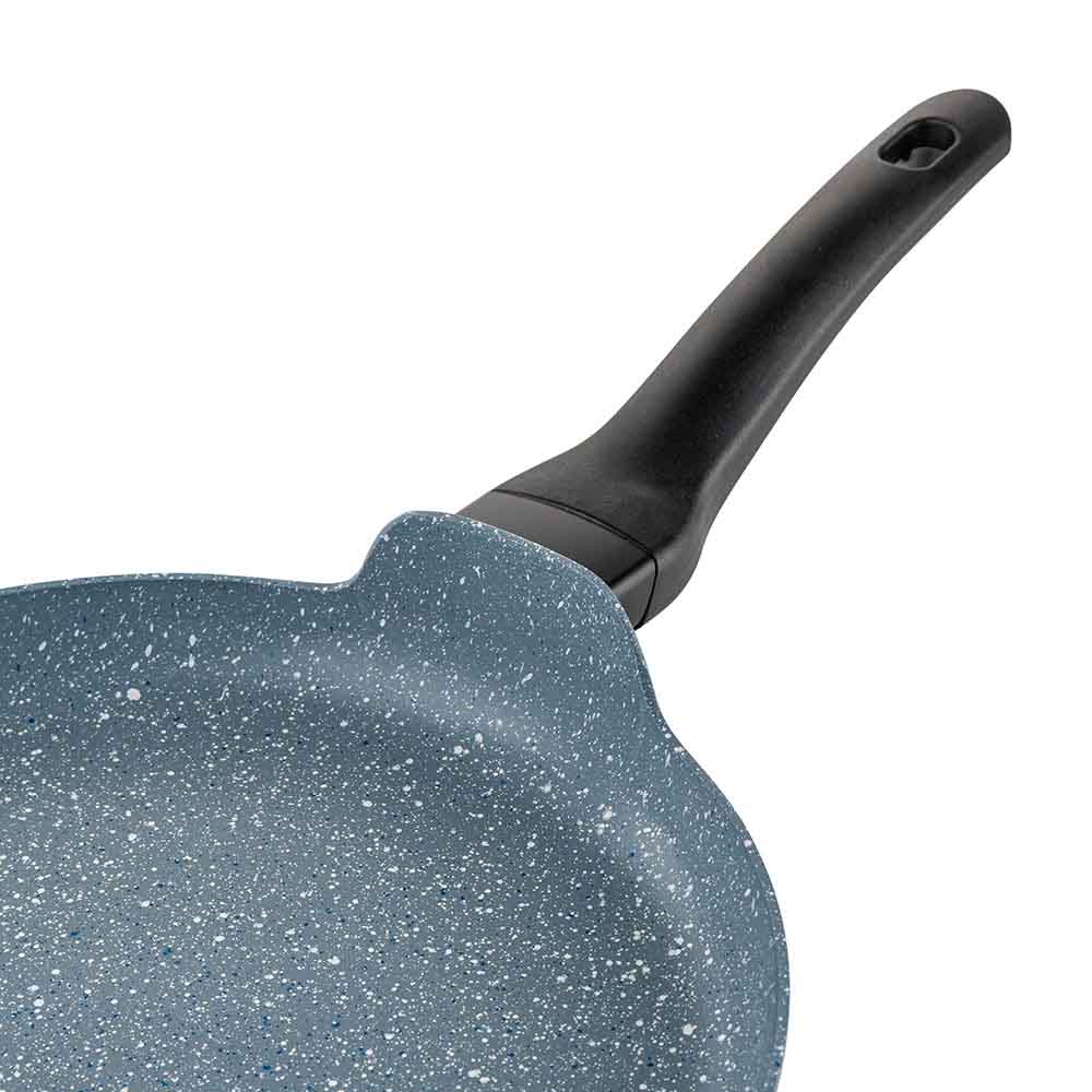 High quality pressed aluminum. Thickness – 2.5mm Durable marble non – stick coating. Suitable for electrical, gas, ceramic, halogen and induction hot plates. Dishwasher safe. Suitable for healthy cooking without fat. Easy cleaning.