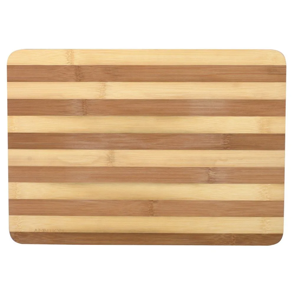 Natural Durability with a Modern Striped Design The Panda Bamboo Cutting Board by AMBITION combines functionality, durability, and natural elegance. Featuring a distinctive wide-striped pattern, it adds a stylish touch to any kitchen while offering a solid and reliable surface for everyday food preparation. Made from high-quality bamboo wood, this board stands out for its exceptional hardness and stringy fiber structure. Bamboo is naturally lightweight yet highly durable, making it flexible and resistant to abrasion. This ensures long-lasting performance even with frequent use. Strong, Practical & Kitchen-Ready With its generous size and 2 cm thickness, the board provides a stable and spacious surface for chopping vegetables, slicing bread, preparing meat, or serving snacks. The natural bamboo material is gentle on knives, helping maintain blade sharpness over time. Its minimalist design and warm wood tones make it not only a practical kitchen essential but also an attractive serving base for cheeses, appetizers, or charcuterie. Product Specifications Dimensions: Length: 35 cm Width: 25 cm Height: 2 cm Material: Bamboo, wood Design: Wide striped pattern Properties: Hard, lightweight, abrasion-resistant Use: Cutting, chopping, and serving Do not use in dishwasher