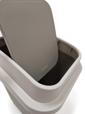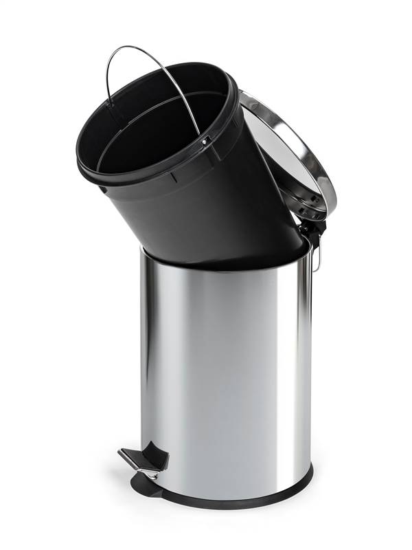 S/s pedal bin 20 l TWIZZ The TWIZZ waste bin, 20 l, stainless steel, outer surface ? gloss, the inner removable garbage container is made of plastic. The waste bin is fitted with a pedal system of lid opening because of hygienic handling.