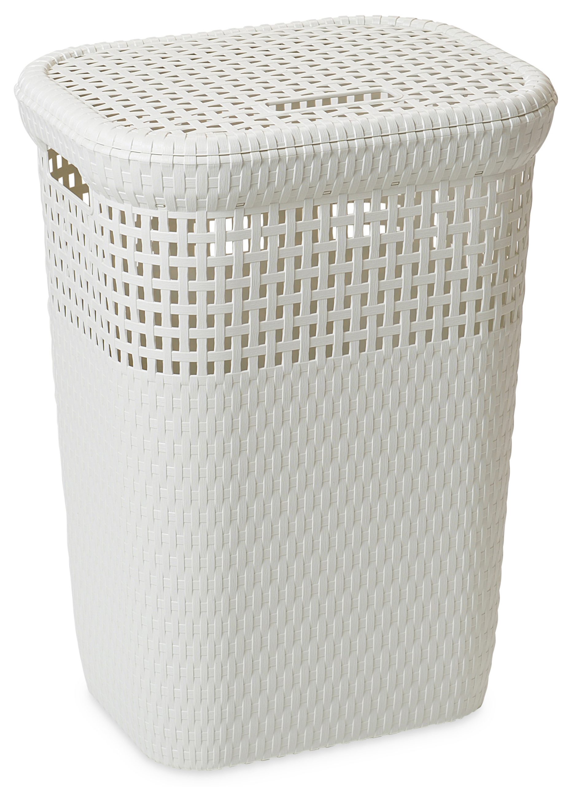 High-quality plastic laundry basket with handles with rattan-style finish. Volume: 60L. Dimension: cm 42x33x58h.