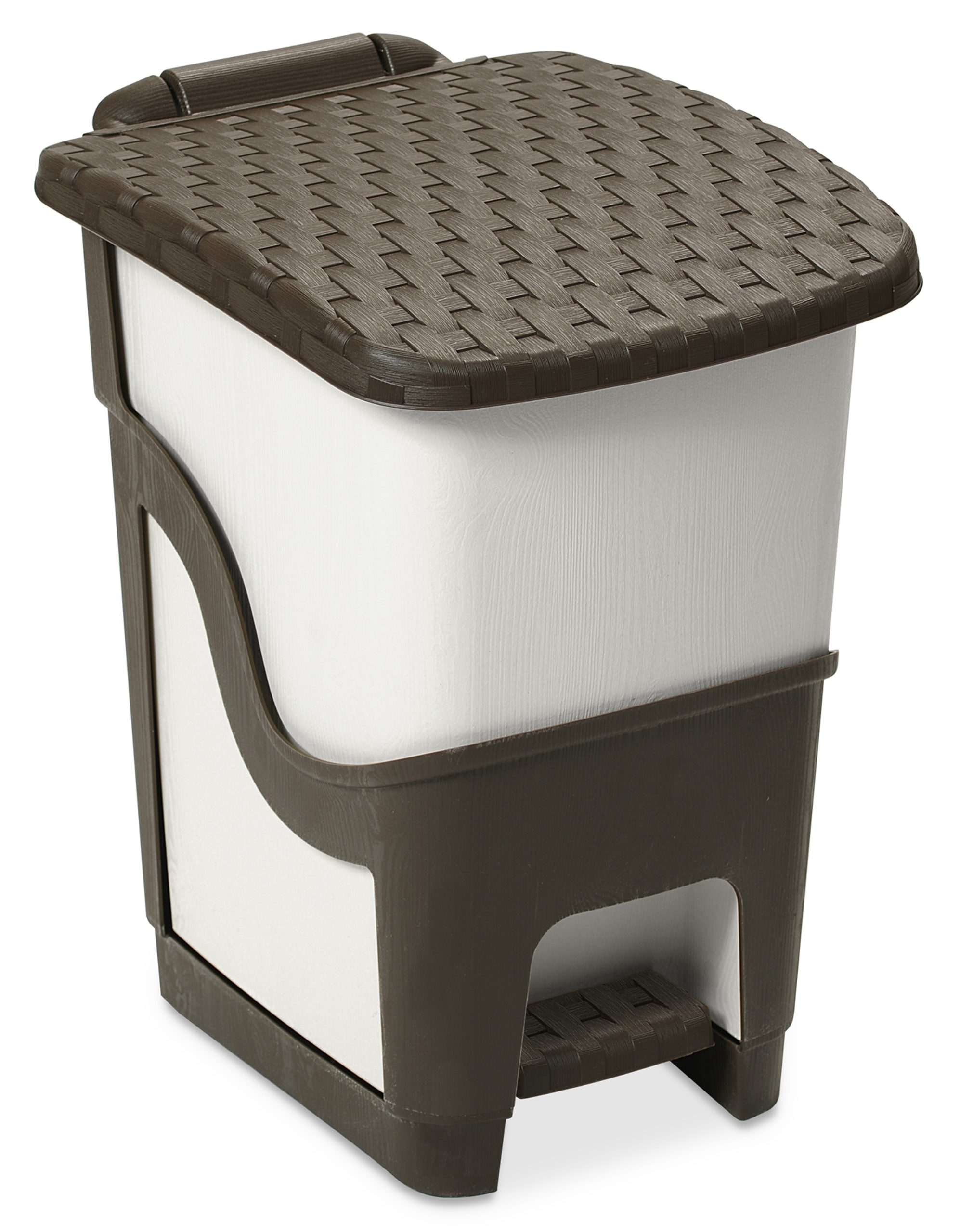Pedal bin with internal bucket. Bicolour, rattan + wood style decoration. Volume: 18L. Dimension: cm 28x35x40h.