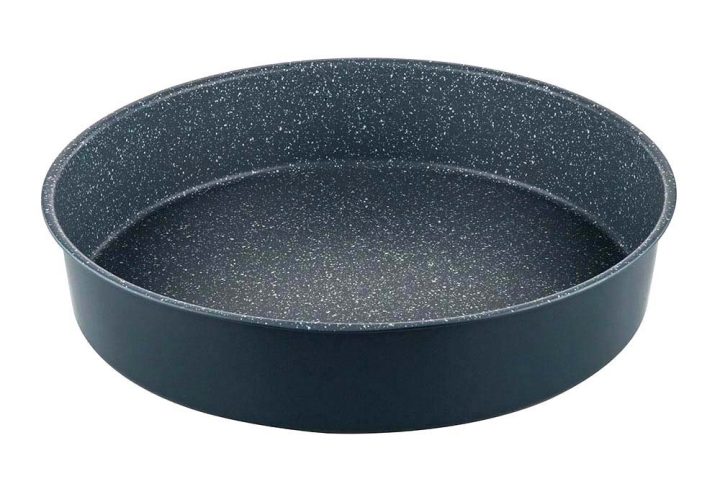 Carbon steel with marble non- stick coating. Use up to 240 degrees. Use nylon, wooden or silicone tools not to scratch the coating surface. Do not use in oven temperatures in excess of 240?C. Not suitable for use over direct heat or under grills. Always use an oven glove when removing from the oven. Never use abrasives. Dishwasher safe