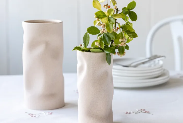 Sand MY HOME vase – a combination of naturalness and elegance The Sand Vase, measuring 12 x 12 x 30 cm, is a harmonious blend of modern design and subtle, natural colors. Crafted from the highest quality porcelain, it captivates with its contrasting surface – one half is smooth, the other sandblasted, giving it a unique character. Its beige, brown, and creamy color brings warmth and tranquility to any interior, emphasizing coziness and elegance. Its minimalist form and subdued aesthetic make it a perfect complement to modern, Scandinavian, boho, and industrial styles. A stylish decoration with a natural accent The Sand Vase is the perfect choice for those who value subtle details and harmony in interior design. Its thick walls ensure durability and stability, while the contrasting smooth and sandblasted finish attracts the eye, giving any space a unique character. The 30 cm tall vase is perfect as a decorative element on a table, dresser, or windowsill, creating a delicate base for cut flowers or dried arrangements. High-quality porcelain – durable and solid workmanship ensures the longevity of the product. Contrasting surface – smooth and sandblasted finish adds uniqueness. Natural colors – beige-brown cream shade suits various arrangements. Optimal dimensions – 12 x 12 x 30 cm, ideal for table and shelf decorations. Universal design – fits perfectly with Scandinavian, modern and boho styles.