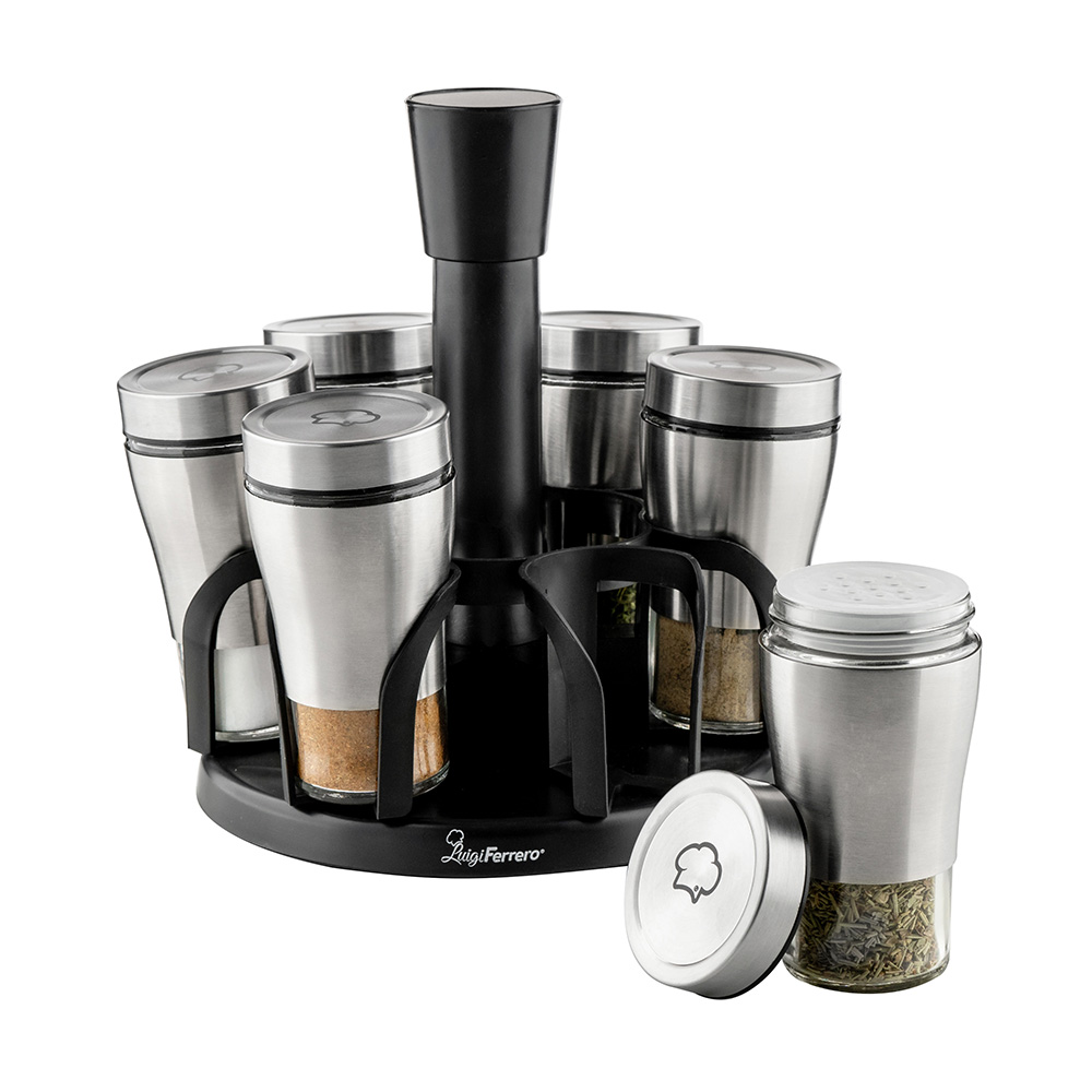 ntended for cooking Suitable for home use or professional catering Storage set: burkanche for adjustments – 6 broys with a capacity of 120ml dimensions for burkancheto: Ø5.1xH10.4cm plastic rotating stand for organized storage on the raft or in the closet Attachment with perforation behind the shoulder on Finnish adjustments Made from temples, class indestructible, glass and resistant plastic Dimensions for the set: 19.8x18xH19cm. Not suitable for cleaning a household car Warranty: 2 years