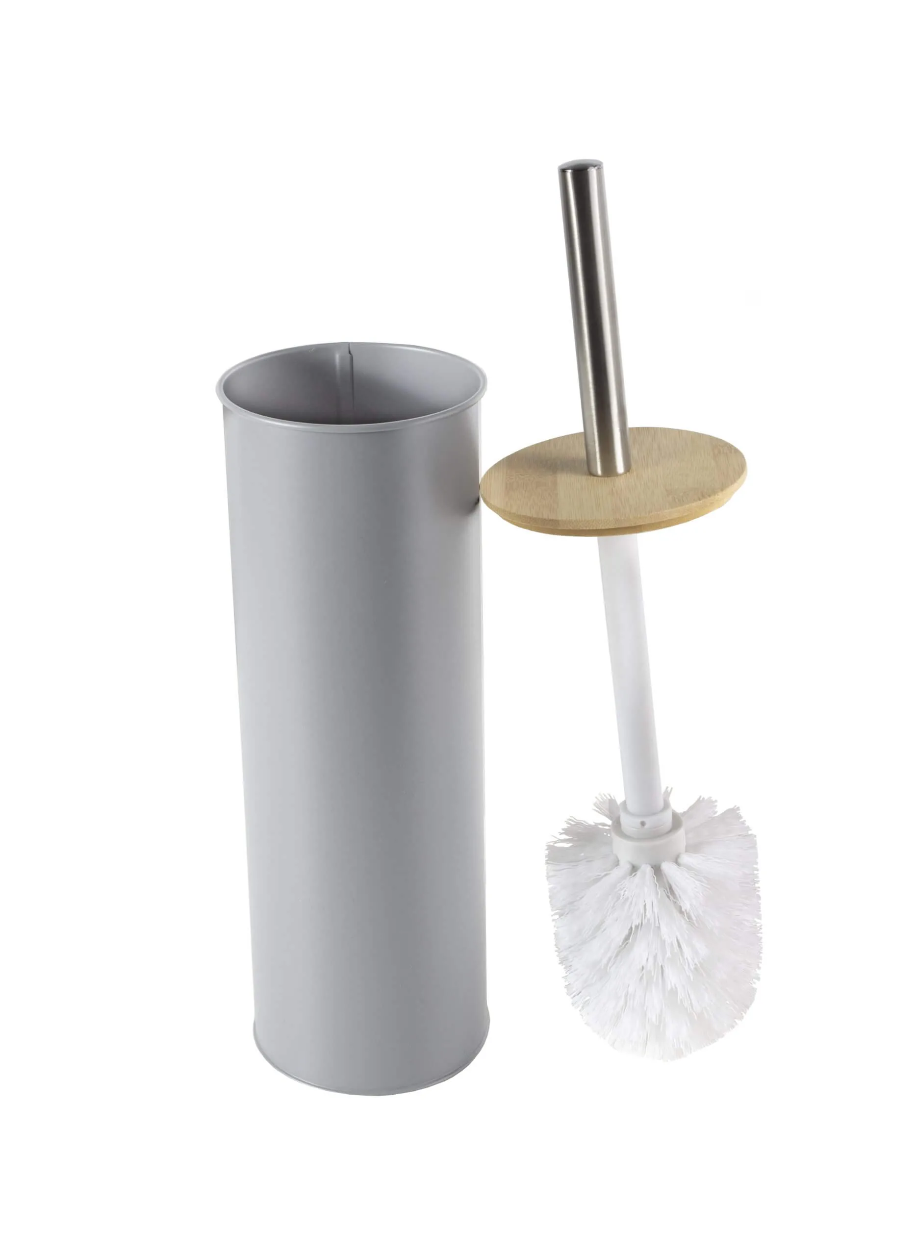toilet brush A useful toilet cleaning brush with a steel handle and a bamboo rim that doubles as a lid for the container. The plastic bristles are designed to remove debris from every corner of the toilet . A gray container is included, which also serves as a stand for the brush. The versatile color scheme, matte finish, simple form, and wood accents complement any restroom perfectly. The brush container is made of metal and will last for years. Stand in the form of a container A functional, yet elegant and stylish addition to your bathroom Helps keep the toilet clean and hygienic